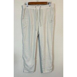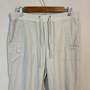 James Perse Solid Linen Drawstring Pants (2) M Solitaire Tan Beige Crop Tapered