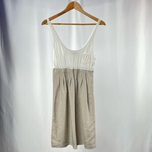 James Perse Standard Colorblock Pocket Tank Dress in White Tan Size Large or 3