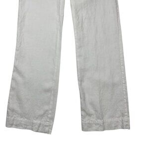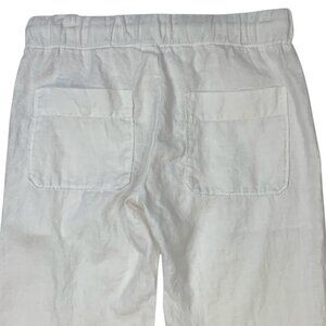 This Standard By James Perse Linen Pant makes a statement due to it's straight wide legs, relaxed pull-on fit, mid rise, elastic waist with drawstring, pockets, full length and white shade.