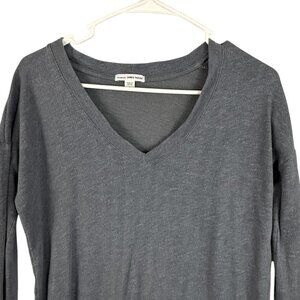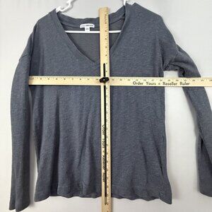 James Perse Sweater Womens Small Gray V Neck Pullover Lightweight Long Sleeve Top