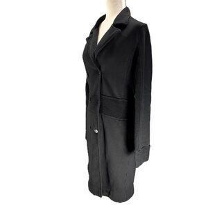James Perse Sz 2 Medium Black Cotton Trench Jacket Lightweight Mixed Media Panel