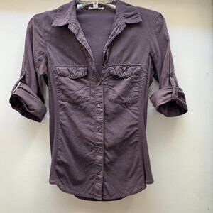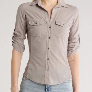 James Perse Three-Quarter Sleeve Button-Up Shirt - Size 1 Charcoal