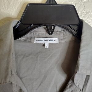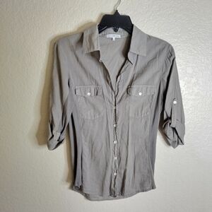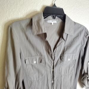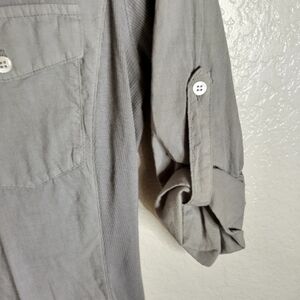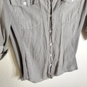 James Perse Three-Quarter Sleeve Contract Panel Button-Up Shirt Grey Sz 3/L