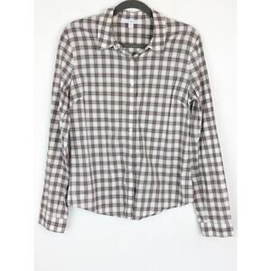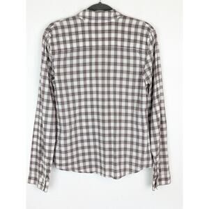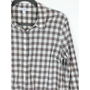 James Perse Top Plaid Western Classic Neutral Spring Fall Tan Cream Size XL