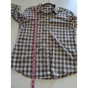 James Perse Top Plaid Western Classic Neutral Spring Fall Tan Cream Size XL