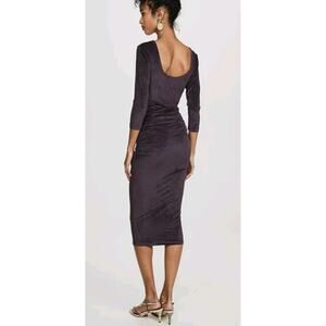 James Perse Womens Purple Fitted Low Back Velvet Ruched 3/4 Sleeve Midi Dress 2 (US Size S/M - mannequin is a size 6 for reference)
