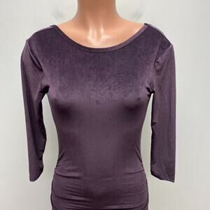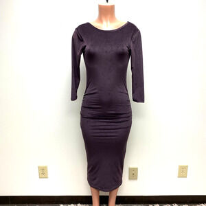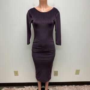 James Perse Women Purple Fitted Low Back Velvet Ruched 3/4 Sleeve Midi Dress S/M