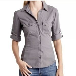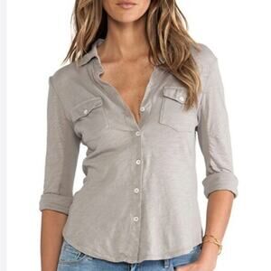 James Perse Womens 3 Large Roll Tab Contrast Panel Luxury Prep Old Money Shirt
