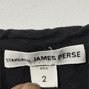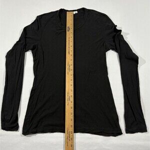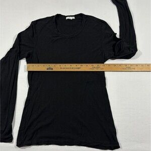 James Perse Womens Black Sheer Slub Long Sleeve Supima Cotton Crew Sz 2 M USA