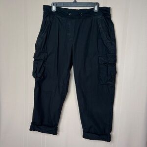 James Perse Women's Cotton Cropped Rolled Pull-On Cargo Parachute Pants Black 3
