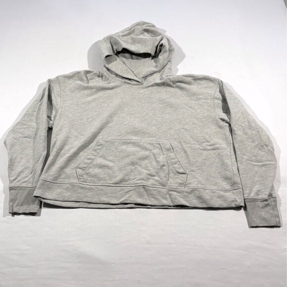 James Perse Womens Gray Cotton Poly Crop Pullover Hoodie Top Sweatshirt Sz 2 M