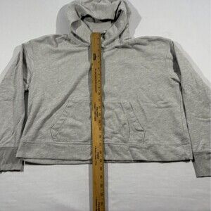 James Perse Womens Gray Cropped Hoodie Sz 2 (M) Cotton Poly Pullover Sweatshirt Flaws