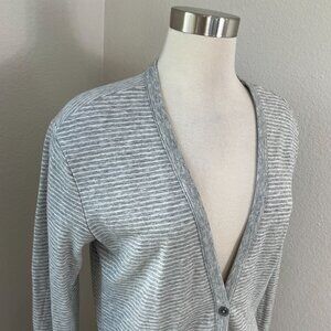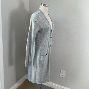 James Perse Womens Large Striped Button Front Long Cardigan Mid Length Gray