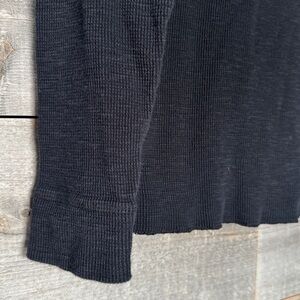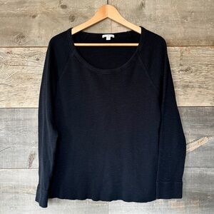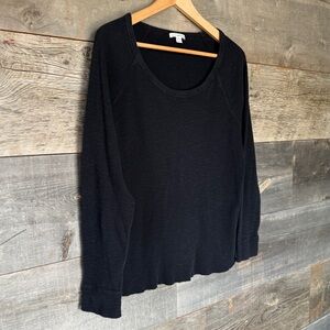 James Perse Women’s Raglan Long Sleeve Thermal Waffle Knit Tee Black Casual M