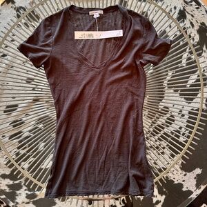 James Perse Women's Sheer Slub V Neck Tee in Carbon Size 0/XS