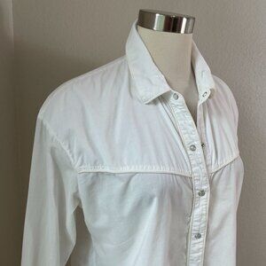 James Perse Womens Small White Pearl Snap Shirt Long Sleeve Blouse Western Top