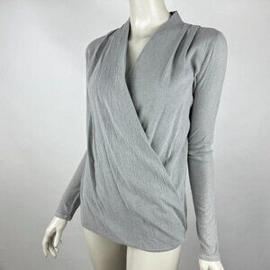 James Perse Wrap Top Women 1 S EUC V-neck Long Sleeve Stretch Cotton Blouse Gray