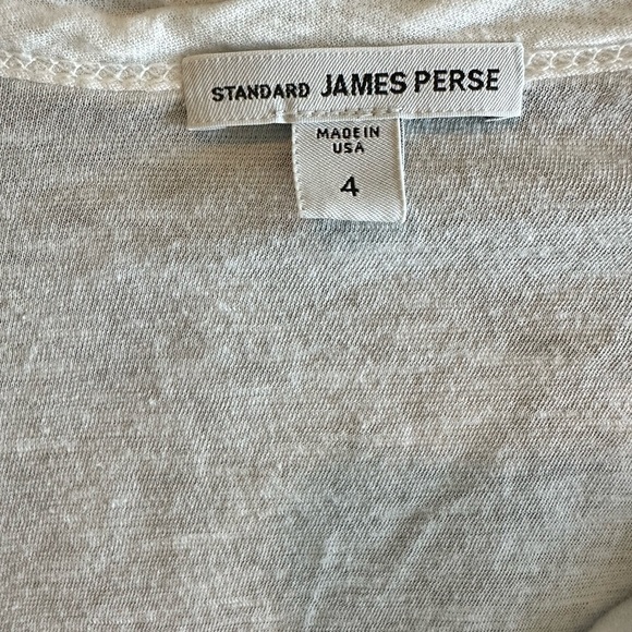 Two James Perse tees in size 4 (equals Large). White lightweight rounded v neck and basic black crew neck.