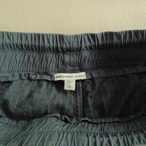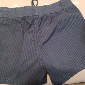 James Perse classic lightweight lyocell cotton blend shorts. 65% cotton, 35% lyocell. Blue oil color. Textured stripe desig. Elasticized waistband with drawstring. Front slash pockets. Size 3.
