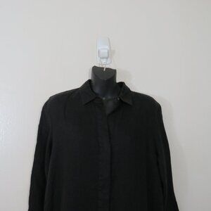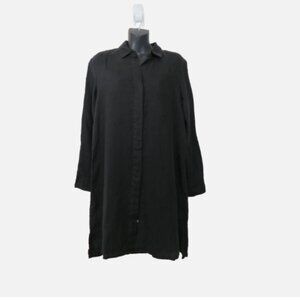 James Perse size 1 Small Linen Shirt Dress Long Sleeve Button Down Black NEW