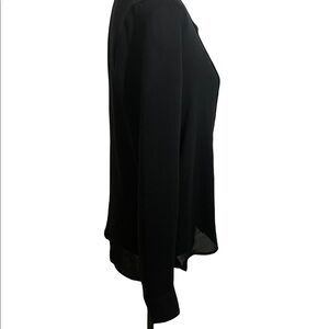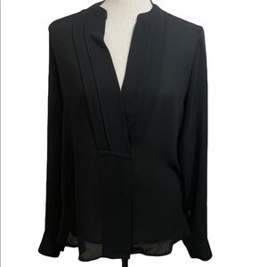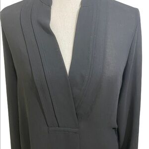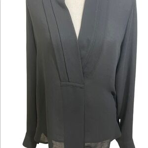 James Perse womens Size 1 equal to a small V-neck pleated front sheer black long sleeves blouse top. Crossover style.