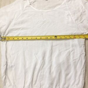 Soft top with elastic at cuffs and hem - size 1 (small) - gently worn, no stains, one tiny hole on back as shown in last photo