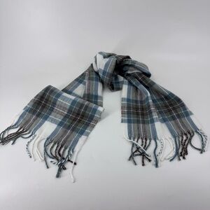 James Pringle Weavers Blue and Gray Tartan Scarf with Fringed Ends
