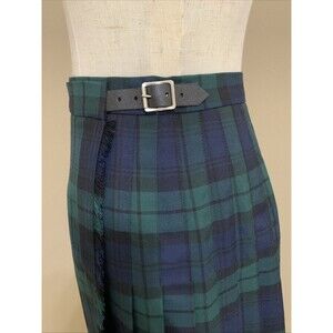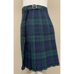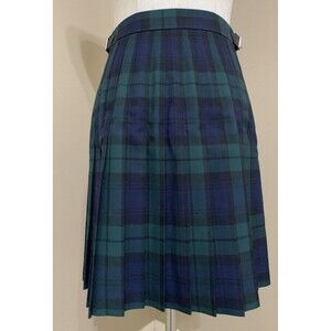 James Pringle Weavers Skirt Blue Size 8 Small Kilt Tartan Check Green Blue Wool
