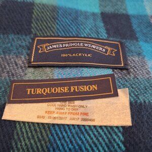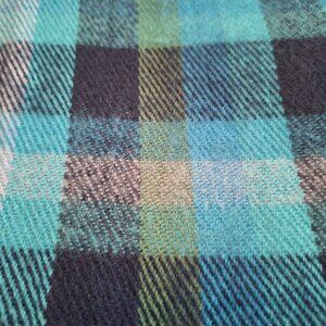 James Pringle Weavers Unisex Turquoise Fusion Blue Plaid Tartan Fringe Scarf 59"