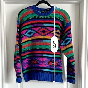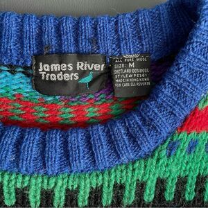 James River Traders Vintage 100% Shetland Wool Sweater Chunky Bold 90s Dad Sz M