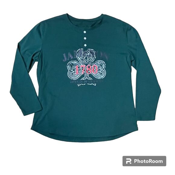green long sleeve whiskey wisky wiskey whisky Ireland Irish button pull over