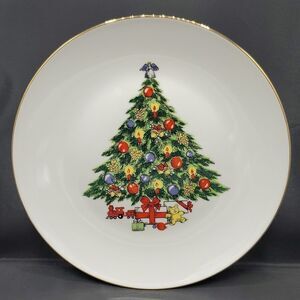 Jamestown China Christmas Tree Dinner Plate with Gold Trim 11"