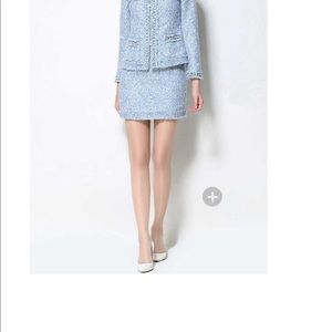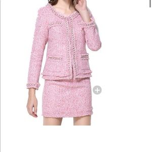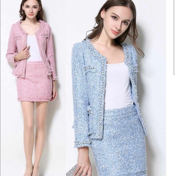 Skirt Suit Women's Elegant Office Lady Formal Tweed Wool Blazer Jacket Mini Skirt 2 Piece Set. Perfect for Fall and Winter.