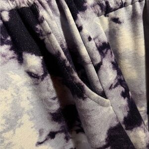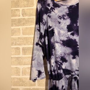 Stylish tie-dye dress with a drawstring waist. Features a blend of blue and black colors.