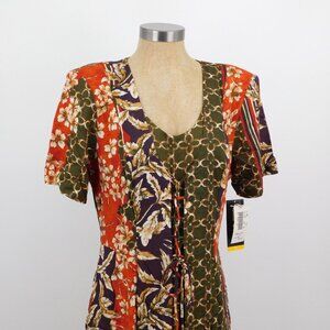 Jamie Brooke Women Multicolor Floral Scoop Neck Short Sleeve Maxi Dress Size 12