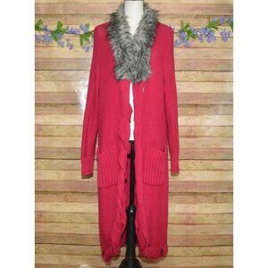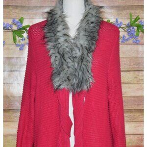Jamie Gries Hot Pink Chunky Duster Cardigan Sweater Plus Size 1X Faux Fur Collar