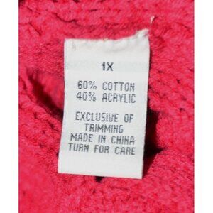 Jamie Gries Hot Pink Chunky Duster Cardigan Sweater Plus Size 1X Faux Fur Collar