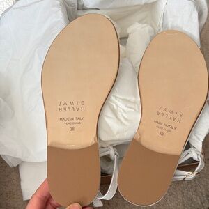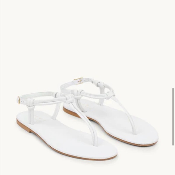 Gorgeous and chic Jamie Haller knot sandal in white leather. Would fit size 7.5/8 best. True to size. Soft leather with adjustable ankle strap.
