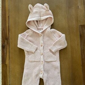Let your little one snuggle up in the adorable Bear Knit Onepiece in Light Piml Marle. Crafted from 100% cotton, this cosy all-in-one features a soft knit texture, coconut button details, front pockets, and the sweetest bear ears on the hood. Perfect for keeping your child warm while looking irresistibly cute.