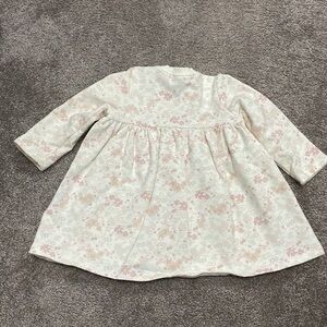 I can’t remember the name of this floral but it’s so pretty. Photographing more creamy in this lighting but it’s more of a pure white with pink and green floral details. If you need pictures in daylight, just let me know! Condition is good, worn a ton and washed but nothing washes better than Jamie Kay! Their quality is top tier for longevity! It’s a thicker cotton- almost like a sweater dress. My daughter loves these! They are so cozy. She is 2 and still fits in it…