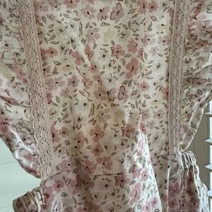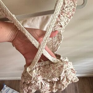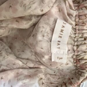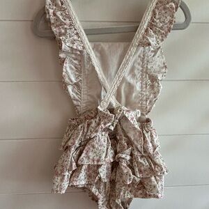 Jamie Kay floral ruffle bubble romper. Cute details with the crochet lace and buttons. Washed in Dreft and laid flat to dry. Smoke free/pet free home. Size 1 year