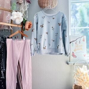 The sweatshirt is from little co. in a beautiful blooming floral print. Size 4T but fits roomy
