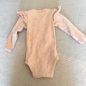 Jamie Kay Pink Daisy Print Ruffle Shoulder Ribbed Long Sleeve One Piece Bodysuit