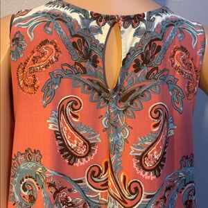 Step out in style with this elegant sleeveless dress featuring a vibrant paisley pattern. Perfect for any occasion, this dress combines comfort with a chic design. The beautiful blend of colors adds a touch of sophistication to your wardrobe. Sewn keyhole back closure.