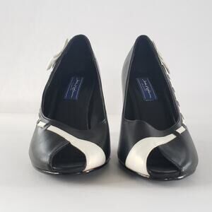 Black with white "ribbon" accent on outer shoe and bow adornment on heel
