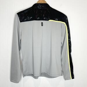 Jamie Saddock Partial Zip Long Sleeve Top Womens Small Asymmetrical Gray Black