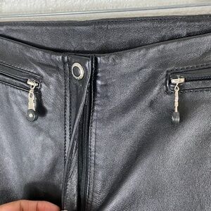 Jamie Sadock 100% Genuine Leather pants.Soft leather. Fully lined with a front zip closure and two front zip pockets. Raw hem.