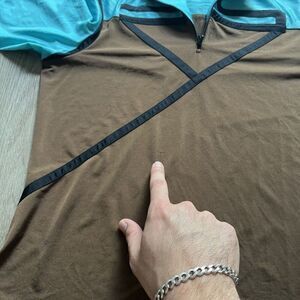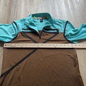 Jamie Sadock 1/4 Zip Shirt Womens Medium Blue Brown Textured Golfing Pockets