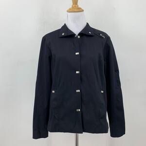 Jamie Sadock Golf Jacket Womens M Medium Black Metal Snap Buttons Retro Lined