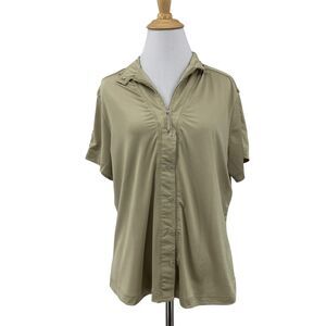 Jamie Sadock Golf Polo Womens L Large Eucalyptus Zipper Snap Button Quarter Zip